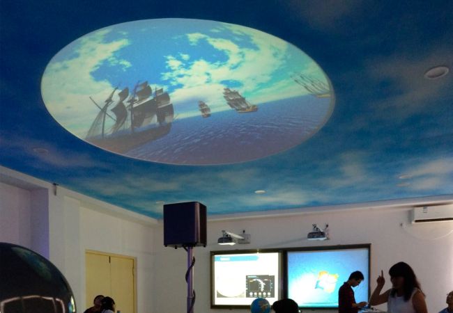 隨著教育觀念和地理學(xué)科教學(xué)改革的深“現(xiàn)代化地理專(zhuān)用教室”被許多具有前瞻意識(shí)的學(xué)校提上議事日程。通常以地理課程內(nèi)容時(shí)間跨度大作為國(guó)內(nèi)數(shù)字化教學(xué)的先鋒品牌,羿飛教育將利用宇宙星空演示穹頂對(duì)枯燥復(fù)雜的知識(shí)進(jìn)行生動(dòng)的展現(xiàn)和傳達(dá),學(xué)生能夠更好更快地進(jìn)入課堂,地理課堂所提供的學(xué)習(xí)情境也更能激發(fā)學(xué)生對(duì)地理的喜愛(ài)和專(zhuān)注。比如講解麥哲倫航行,教師就可以通過(guò)播放一個(gè)視頻來(lái)方便學(xué)生記憶,從西班牙出發(fā)穿越大西洋、太平洋、印度洋最終回到西班牙。流經(jīng)了哪些地方,就可以展現(xiàn)各城市風(fēng)俗、地貌等比較有代表性的事物,讓學(xué)生在記住這些之后也能記住此次航行的意義,沉浸式的觀感體驗(yàn)讓學(xué)生仿佛跟從船隊(duì)經(jīng)歷來(lái)一次環(huán)球旅行。