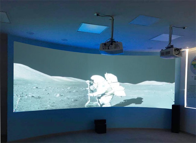 ▲環(huán)幕示教系統(tǒng):專用于地理視頻資源的播放。巨大的屏幕帶來震撼的視覺沖擊,直觀地展示事物發(fā)展的動態(tài)過程,讓課程內(nèi)容變得更生動有趣。