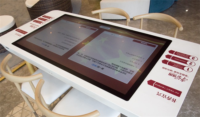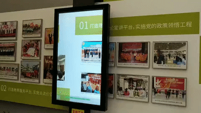 隨著滑軌屏的移動,文化墻上的宣傳內(nèi)容會相應(yīng)地出現(xiàn)在屏幕上,讓宣傳展示更有趣新穎。