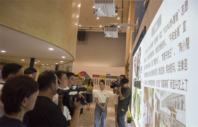 3D Mapping互動墻集中展示了我市廣泛組織力量,有效調(diào)配資源的工作網(wǎng)絡(luò),由兩臺超短焦激光投影機進行演繹。在左側(cè)大屏相應(yīng)位置進行點擊,右側(cè)屏幕將及時響應(yīng)顯示出相關(guān)介紹。