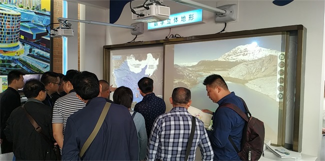 羿飛數(shù)字化地理專用教室集現(xiàn)代地理教育技術(shù)最新成果之大成,現(xiàn)場(chǎng)展出了多媒體超半球互動(dòng)球幕投影演示儀、數(shù)字立體地形、天文演示儀、地理微課堂、數(shù)字模型、交互式3D多媒體教學(xué)系統(tǒng)等教學(xué)設(shè)備,囊括地理教學(xué)的方方面面。