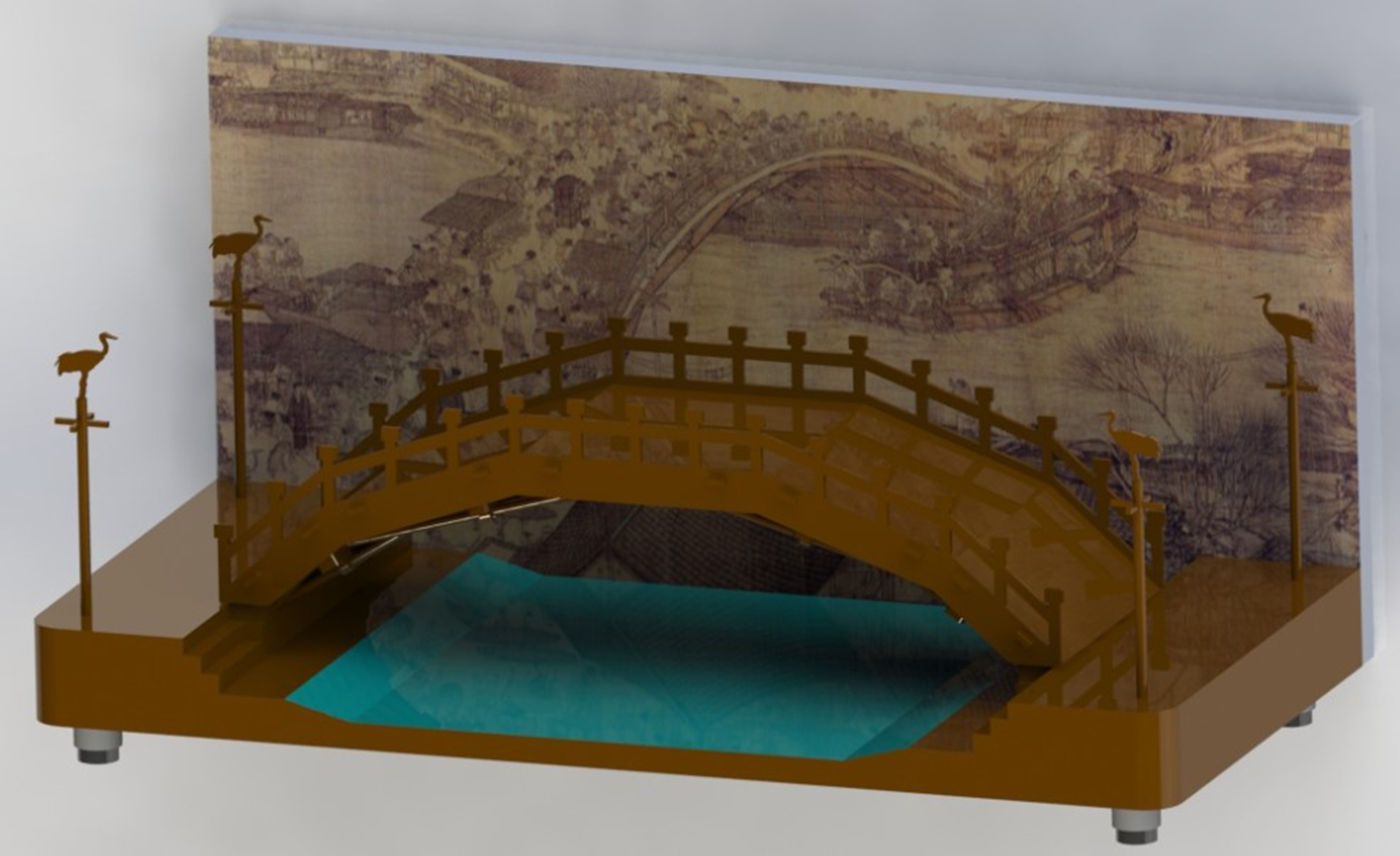 《清明上河圖》整幅長卷創(chuàng)作于十二世紀(jì)初的中國,圖卷通過全景式構(gòu)圖,描繪出北宋都城汴梁繁華綺麗的景象。而汴京的自然風(fēng)貌與人文景觀尤以汴水虹橋,及虹橋兩堍對立著的四個(gè)華表為中軸鋪展而來。我司產(chǎn)品編木拱橋演示模型旨在深刻透析作為《清明上河圖》全卷中心的虹橋——編木拱橋基礎(chǔ)上,幫助學(xué)生整體把握北宋時(shí)代的精神風(fēng)貌,并進(jìn)而協(xié)助教師培育學(xué)生實(shí)踐操作能力與歷史交互思維。