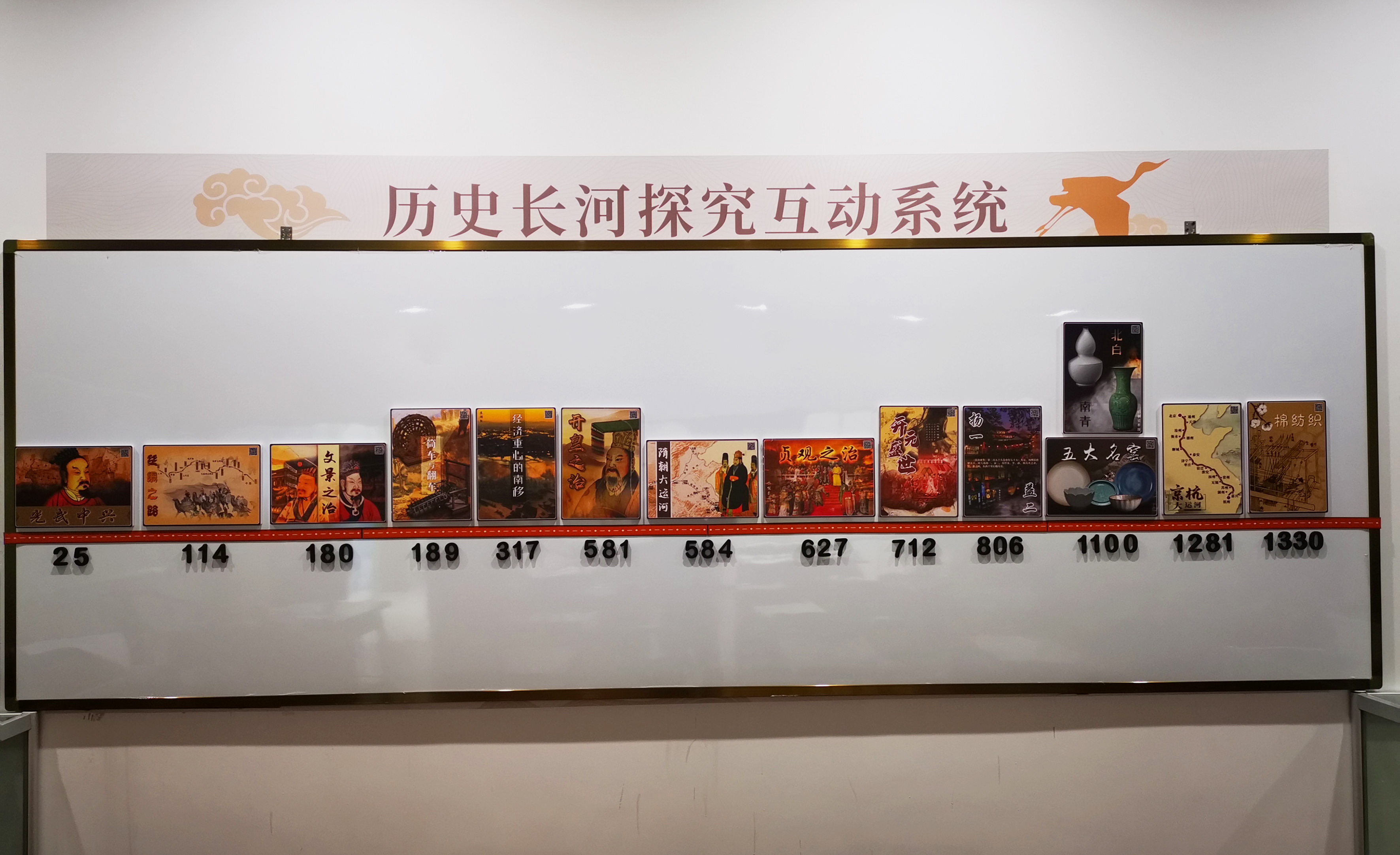 歷史長河探究互動系統(tǒng)系我司自主研發(fā)的歷史教學(xué)輔助系統(tǒng),其篩選出中國與世界萬年歷史長河中最重要的數(shù)百件歷史事件,并將相關(guān)圖片、文字、音頻、視頻等數(shù)字資源上傳至云端服務(wù)器,師生可通過對二維碼進行掃描,從而提取其中所蘊含的可視化信息,進而通過活動板墻的形式予以展示。探究系統(tǒng)能夠協(xié)助教師進行歷史教學(xué),幫助學(xué)生梳理歷史脈絡(luò),從而達(dá)到并完成簡潔高效、活潑明晰的歷史教學(xué)任務(wù)。