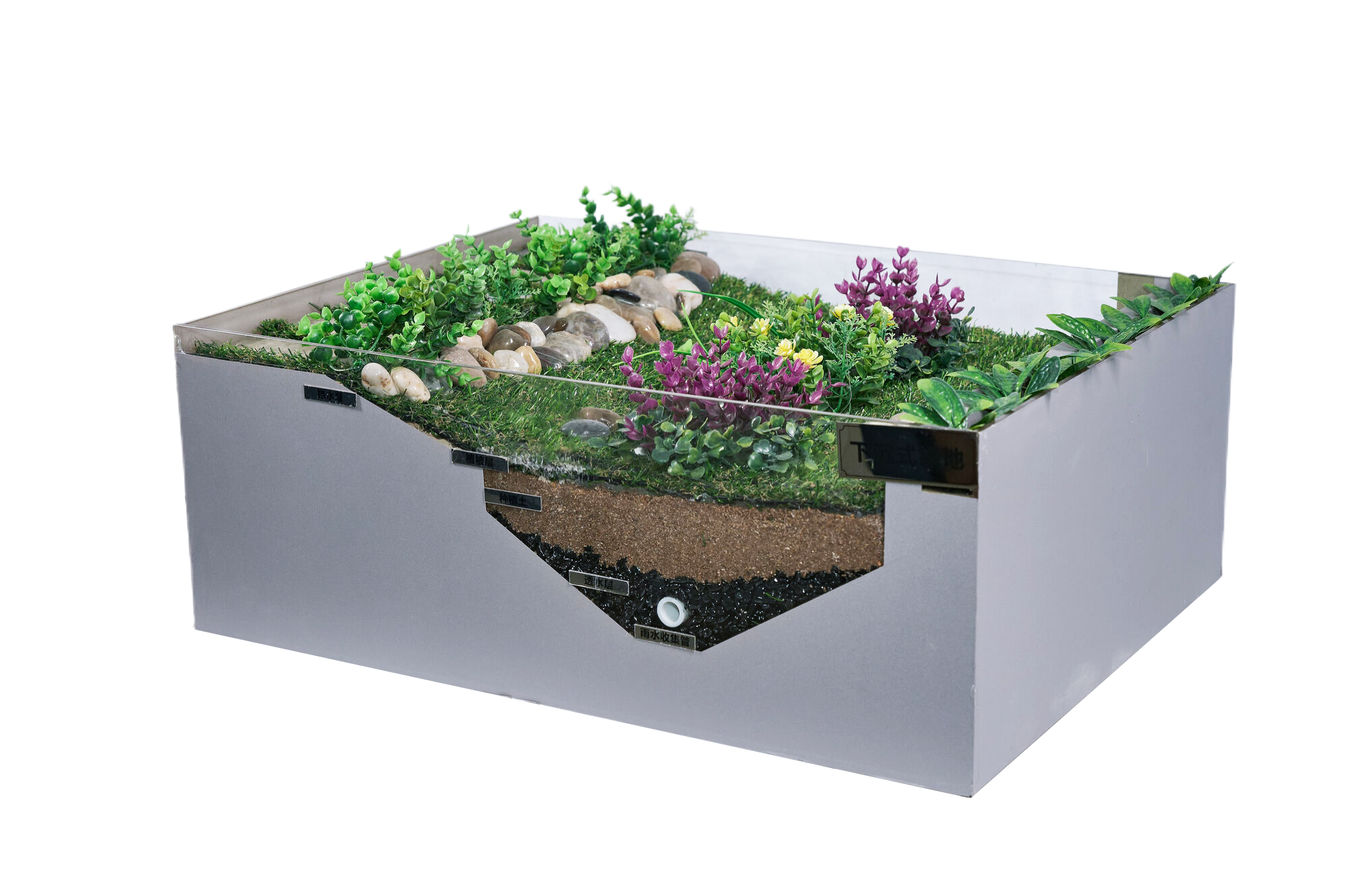 下沉式綠地模型是一種創(chuàng)新的生態(tài)設(shè)計(jì),旨在通過(guò)模擬自然生態(tài)系統(tǒng),提升城市綠地的生態(tài)功能與教育價(jià)值。該模型將綠地設(shè)計(jì)為低于周?chē)孛娴陌枷輩^(qū)域,利用地形優(yōu)勢(shì)收集和滯留雨水,促進(jìn)自然滲透與凈化,減少地表徑流,緩解城市內(nèi)澇問(wèn)題。同時(shí),下沉式綠地通過(guò)種植多樣化的本土植物,營(yíng)造接近自然的生態(tài)環(huán)境,吸引鳥(niǎo)類、昆蟲(chóng)等生物,增強(qiáng)生物多樣性。